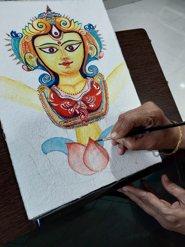 Durga Puja Watercolor on Paper | 1 X 1.5 Ft. Rising Star: Swati Karkare