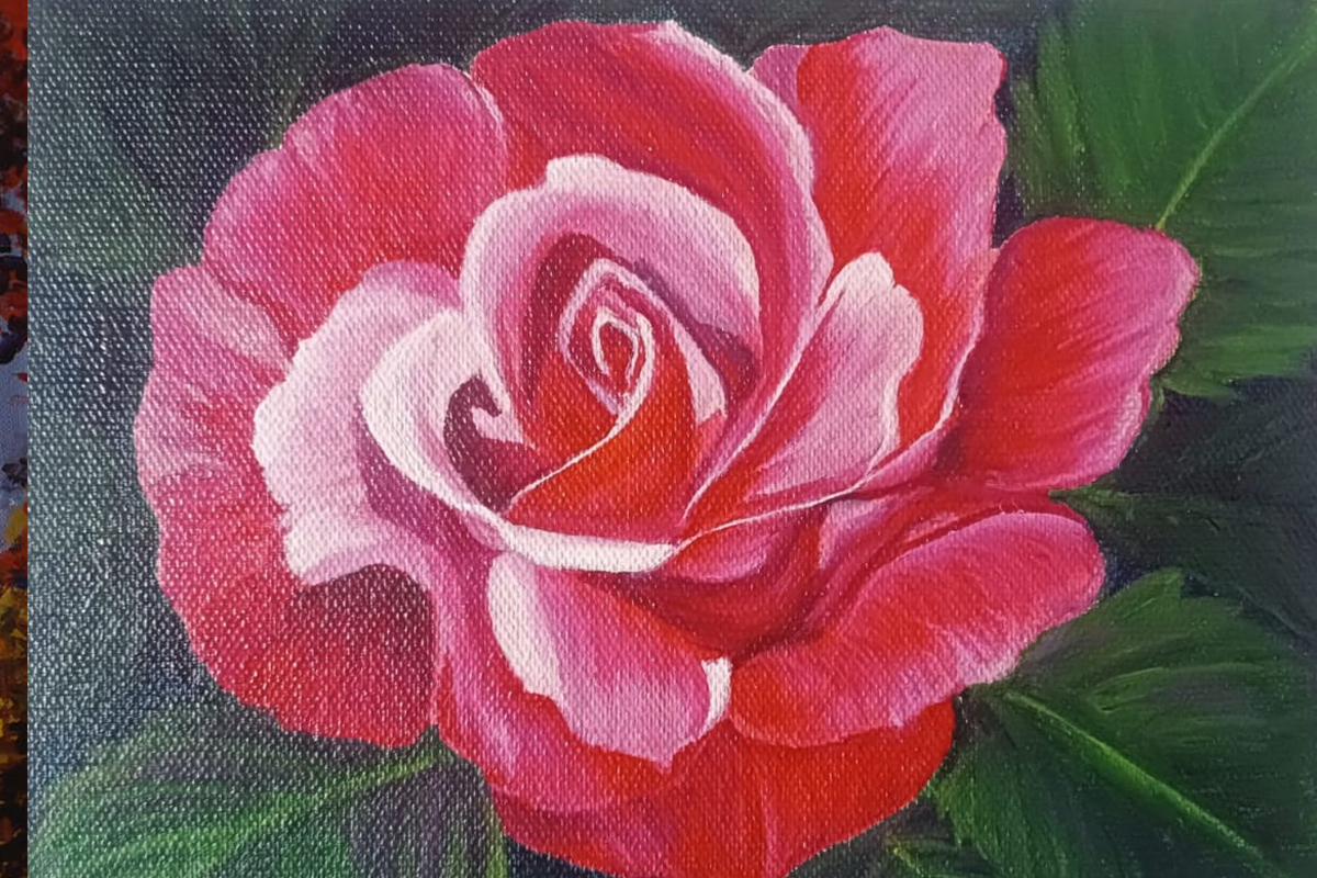 Pink Rose Oil on Canvas | 1 X 1.5 Ft. Rising Star: Swati Karkare
