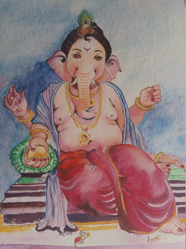 Ganesha Water color on Paper | 1 X 1.5 Ft. Rising Star: Swati Karkare