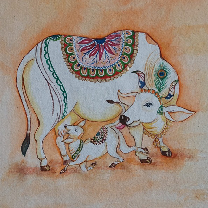 Kamdhenu Water color on Paper | 1 X 1.5 Ft. Rising Star: Swati Karkare