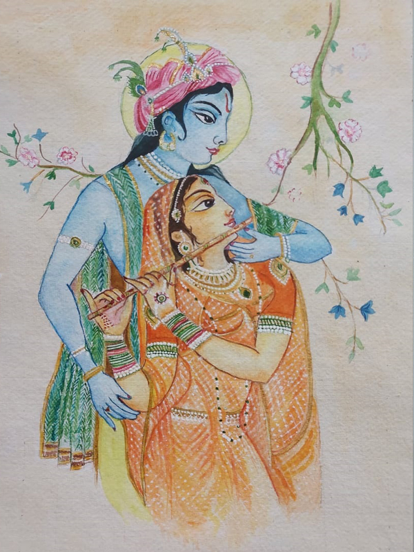 Radhe Krishna Watercolor on Paper | 1 X 1.5 Ft. Rising Star: Swati Karkare
